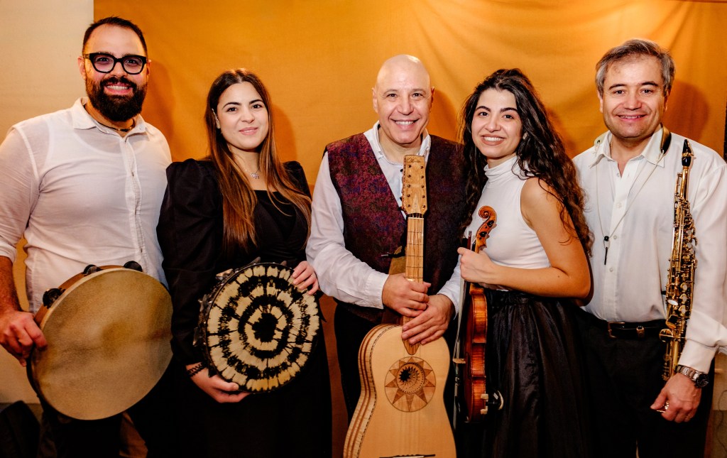 La formazione utilizza strumenti tipici della tradizione musicale popolare, tra cui chitarra battente, chitarra classica, violino, tamburi a cornice e flauti, arricchiti da sonorità moderne come il sax. Le voci intense e autentiche dei musicisti, unite alla presenza di una ballerina di Pizzica, che danza al ritmo del tamburello, rendono ogni concerto un’esperienza coinvolgente e ricca di energia.